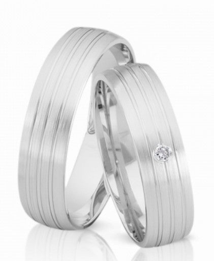 Edles aus Weißgold! So könnten dieses Paar Ringe beschrieben werden. Das 5.5 mm breite Paar von Herzog Trauringe ist ein Klassiker. poliert. Im poliertem befindend sich ein Kanal in diesem 1 edle Brillanten die exklusiv im Damenring hervorstechen. Die Ringe können in 8ct., 14ct. oder dem noch wertvollerem und in seinen Farben intensiveren 18 ct. bestellt werden. Die Ringe sind auch einzeln oder ohne Brillanten bestellbar. Bitte senden Sie uns bei Fragen eine Email.