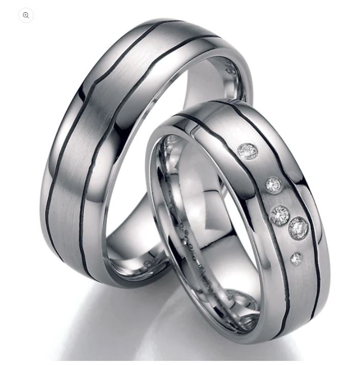 Diese Trauringe besitzen eine wunderschöne Oberfläche die beim Damenring zusätzlich mit Diamanten geprägt ist. Die Ringe sind 6.5 mm breit und aus der Honeymoon Premium Collection von Nowotny. Diese können aus 333er, 585er oder dem edlem Platin gefertigt werden. Der Ring der Dame besitzt 5 Diamanten. Diese Ringe können auch einzeln bestellt werden, bitte senden Sie uns hierzu eine Email.