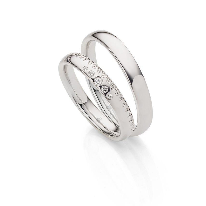Eigenschaften:Aparte 3.5 mm breite Eheringe von Rauschmayer die in mehreren Legierungen angeboten werden. 5 feine Diamanten säumen den Damenring. Die Ringe auch einzeln oder ohne Brillanten bestellbar. Bitte senden Sie uns bei Fragen eine Email.