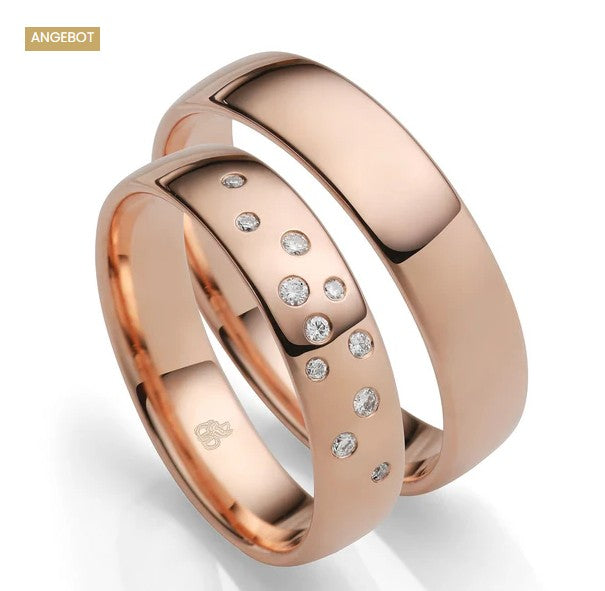 Aus der Kollektion "First-Individual Love" by Rauschmayer stammt dieses wundervolle klassische Ringpaar. Der Ring der Dame funkelt mit 11 Brillanten. Die Trauringe sind in 3 Legierungen erhältlich.