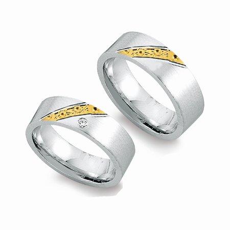 Eigenschaften:Straight und stylish sind diese attraktiven 6.0 mm breiten Bicolor Eheringe von den Designern der Trauringmanufaktur Schwarz. Die schönen Ringe mit den geraden Flächen und Kanten sind etwas ganz besonderes. Der breite Ringrücken ist feinmattiert und schimmert ganz wunderbar im Licht. Unterbrochen wird die Weißgoldene Oberfläche lediglich durch zwei schräg, im Abstand von zirka 3.0 mm, verlaufende filigrane Rillen. Zwischen den beiden Rillen ist eine gelbgoldene, glänzende und verzierte Bahn eingearbeitet. Ein toller Blickfang! Die herrliche Optik rundet der Brautring ab. In der Mitte der Schräge ist, in Randnähe, auf dem Weißgoldenen Untergrund ein 0,02 karätiger Brillant eingerieben. Die Ringe sind auch einzeln oder ohne Brillanten bestellbar. Ebenso ist dieses Modell gegen einen geringen Aufschlag in Unter- und Übergrößen verfügbar. Bitte senden Sie uns bei Fragen eine Email.