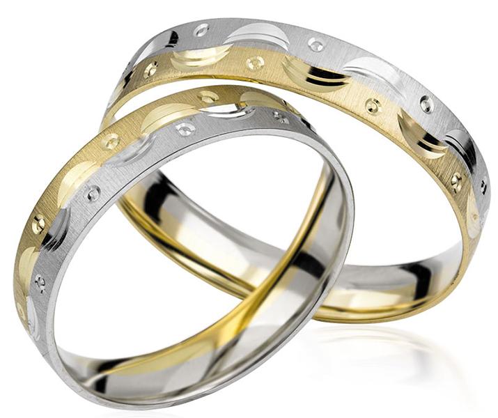 Eigenschaften:Fein und filigran ist diese Komposition aus zwei unterschiedlichen Edelmetallen. Hier sehen Sie die 4 mm breiten Bicolor Eheringe aus Weißgold und Gelbgold geschmiedet. Die Designer der Trauringschmide Simon & Söhne haben den planen Ringkörper mittig mit einer Weißen und einer farbigen Hälfte ausgestattet. Bevor das Muster aus dieser Oberfläche herausgearbeitet wird ist der gesamte Ringrücken quer gebürstet worden. Von der Farbgrenze ausgehend haben die Kreativen versetzt, mal in die Weiße und mal in die farbige Spur, glänzende Doppelbögen eingraviert. Wiederum versetzt und zwischen den Bögen sind runde Orkein Link in Guidote eingearbeitet in deren Mitte ein kleiner Kegel stehen bleibt. Ein wundervolles Ringpaar das für jedes Brautpaar erschwinglich ist. Die Ringe sind in Weißgold/Gelbgold, Weißgold/Rotgold, Palladium/Gelbgold, Palladium/Rotgold, Platin/Gelbgold und Platin/Rotgold erhältlich. Die Preise von Weißgold/Gelb- oder Rotgold, Palladium/Gelb- oder Rotgold und Platin/Gelb- oder Rotgold sind identisch. Die Ringe sind auch einzeln oder ohne Brillanten bestellbar. Bitte senden Sie uns bei Fragen eine Email.