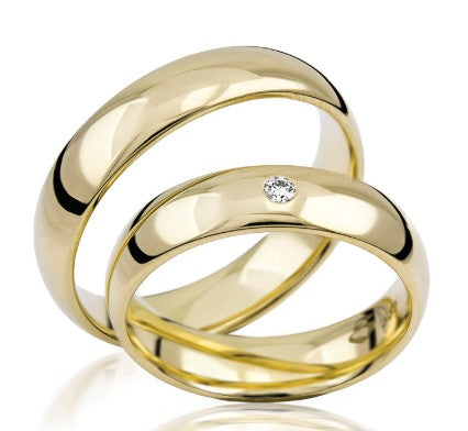 Eigenschaften:Elegante Ringe aus der "Basic" Serie des Trauringhauses Simon & Söhne. Die 5 mm breiten Eheringe haben einen traditionell geformten Körper mit einer hochglanzpolierten, gewölbten, Oberfläche. Die schönen, hier in Gelbgold abgebildeten, Preziosen begeistern durch ihren zeitlosen Stil. Perfekt haben die Edelstein Fasser in der Mitte des Ringrückens bei dem Brautring Ihrer Liebsten einen strahlenden Brillant eingerieben. Der edle Stein hat 0,03 Karat. Die Ringe sind in Weißgold, Gelbgold, Rotgold, Palladium und Platin erhältlich. Die Preise von Gelbgold und Rotgold sind identisch. Die Ringe sind auch einzeln oder ohne Brillanten bestellbar. Bitte senden Sie uns bei Fragen eine Email.