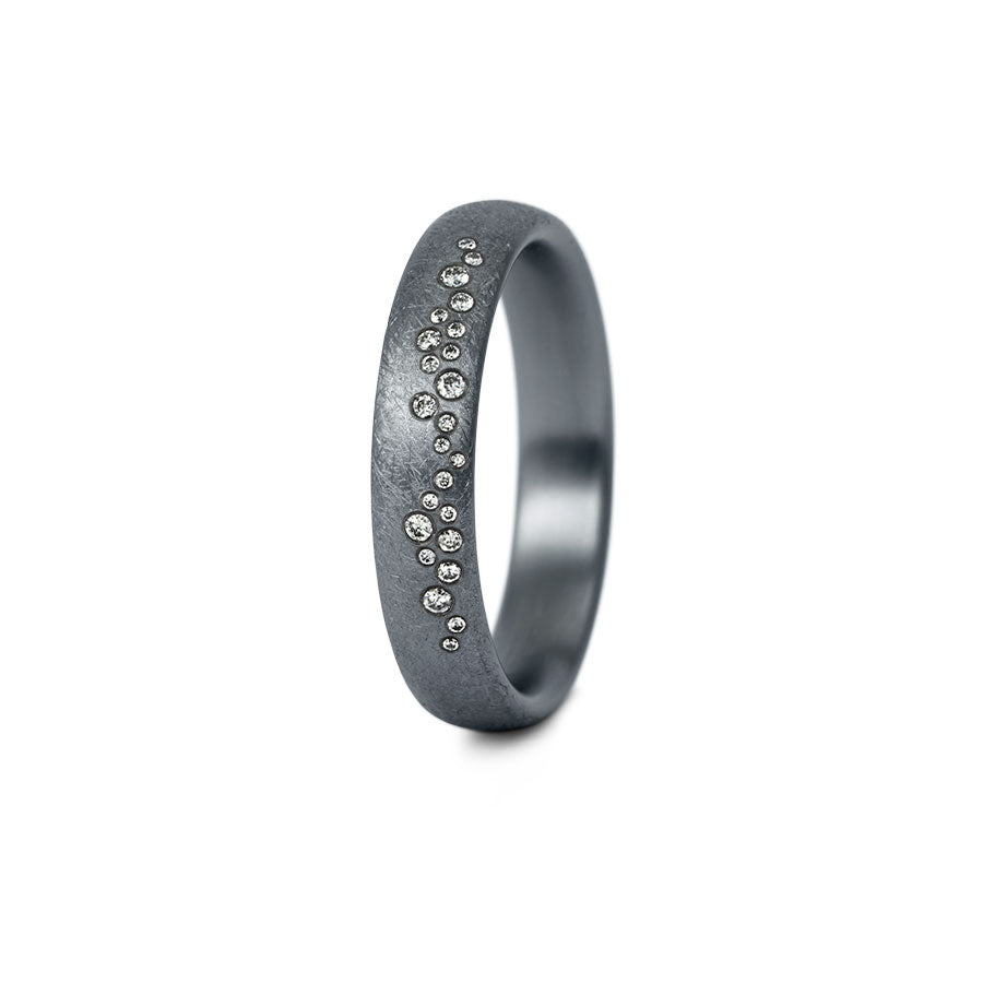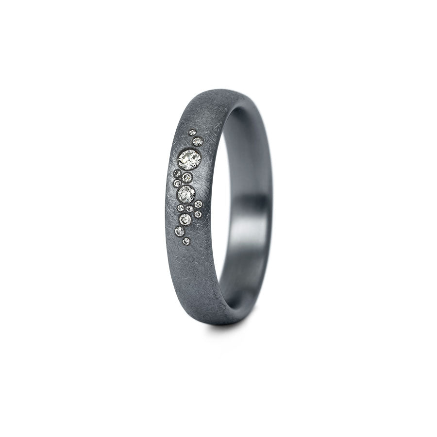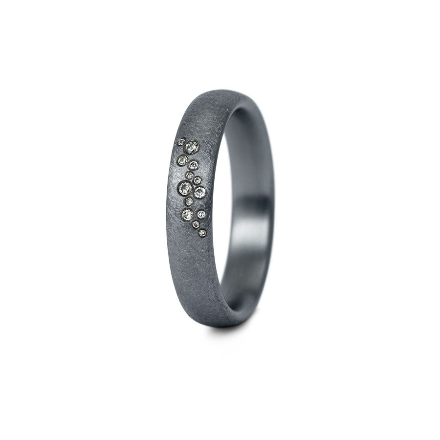 Eigenschaften:Dieser einzelne Ring ist aus dem seltenen Edelmetall "Tantal", mit einer mattierten Oberfläche. Der Ring gibt es mit/ohne Brillantbesatz. Wähle Sie Ihre Diamanten für Ihren Ring selbst aus.