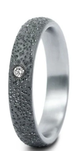 Toller Tantal Ring von Tantalum Magic in einer leicht sandigen Oberfläche. Ein eingeriebener Brillant säumt den Ring. Der Tantal Ring kann in verschiedenen Breiten bestellt werden.