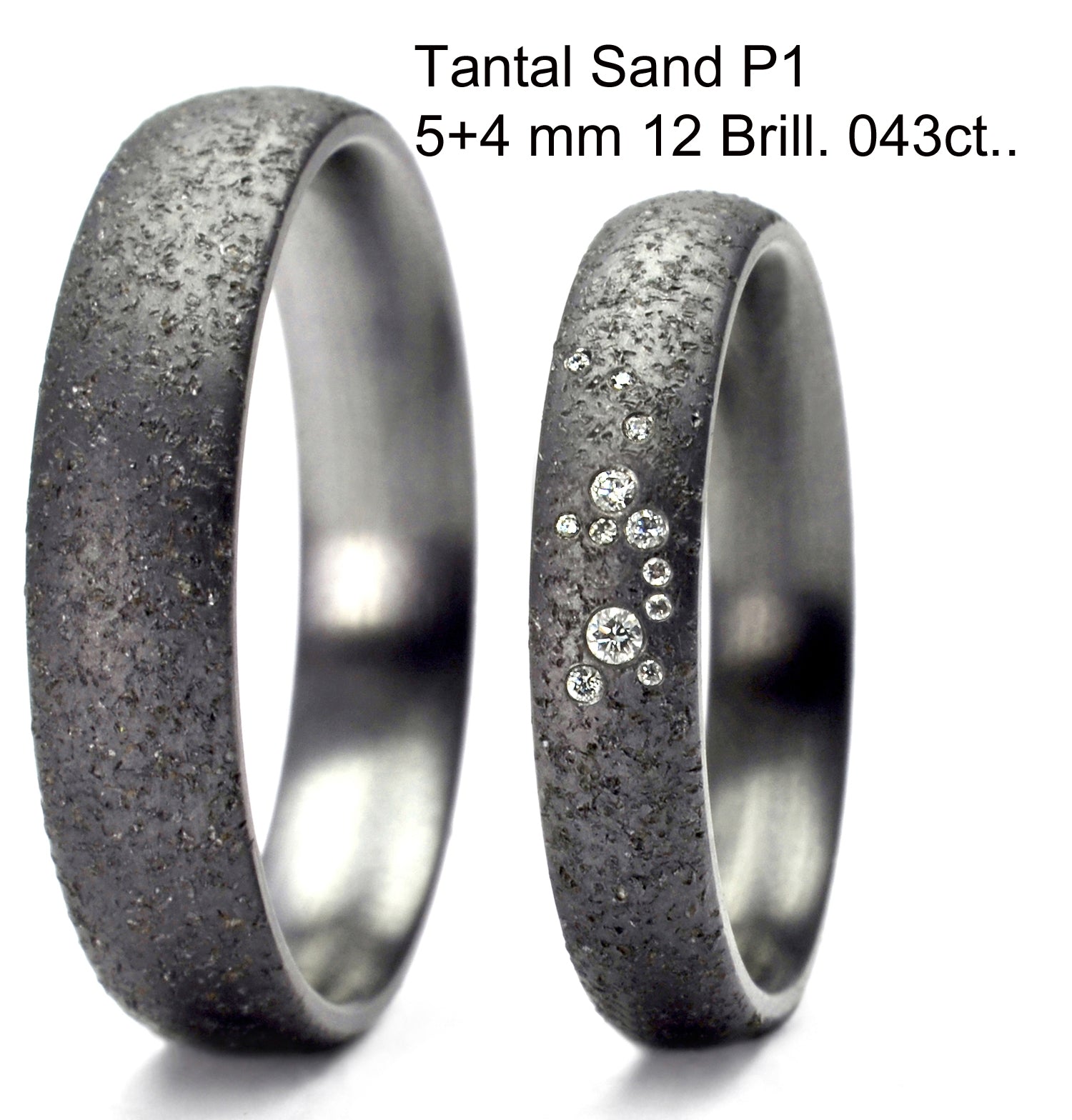 Tantalum Magic Tantal Trauringe Sand P1 12 Brill. 0,047ct.