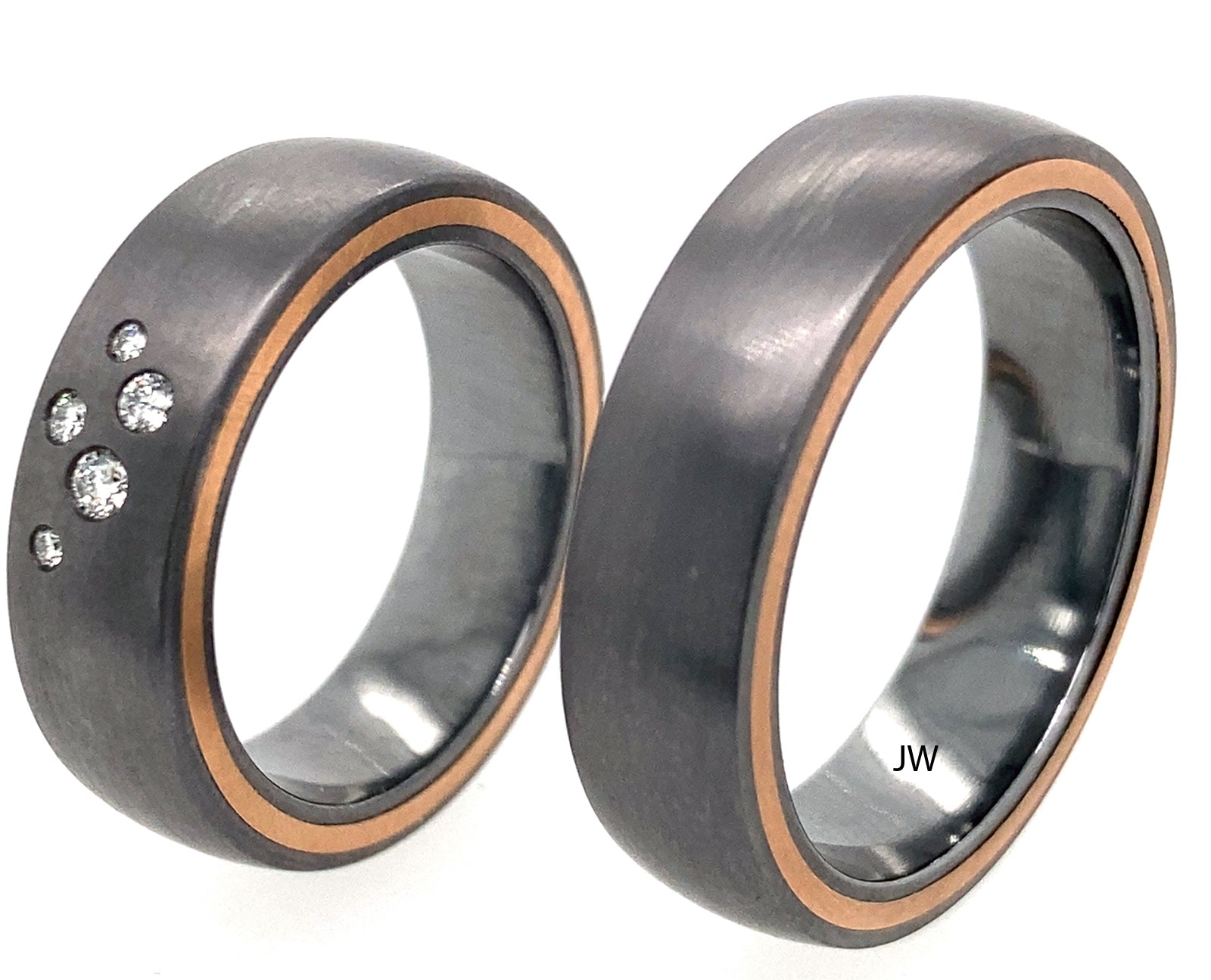 Tantalum Magic präsentiert hiermit wunderschöne 6 mm breite Ringe aus Tantal/Rotgold750.