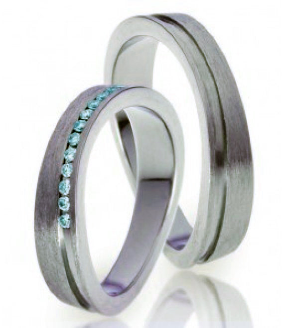 Zauberhafte 5 mm breite Titan Eheringe aus der Ocean Blue Serie von TitanFactory. Der Damenring besitzt 9 blaue Diamanten mit 0,09 ct. Diese Ringe können auch einzeln bei uns bestellt werden, bitte senden Sie uns hierzu eine Email !